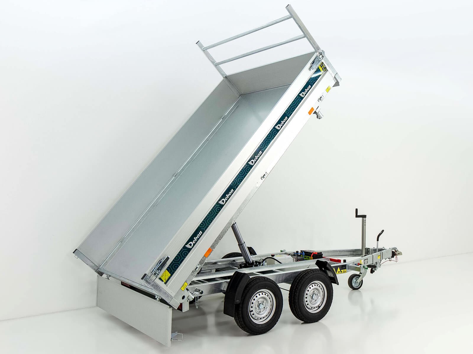 Debon driezijdige kipper 180x306cm 2.6t | Elektronische pomp | Oprijplaten | Steunen