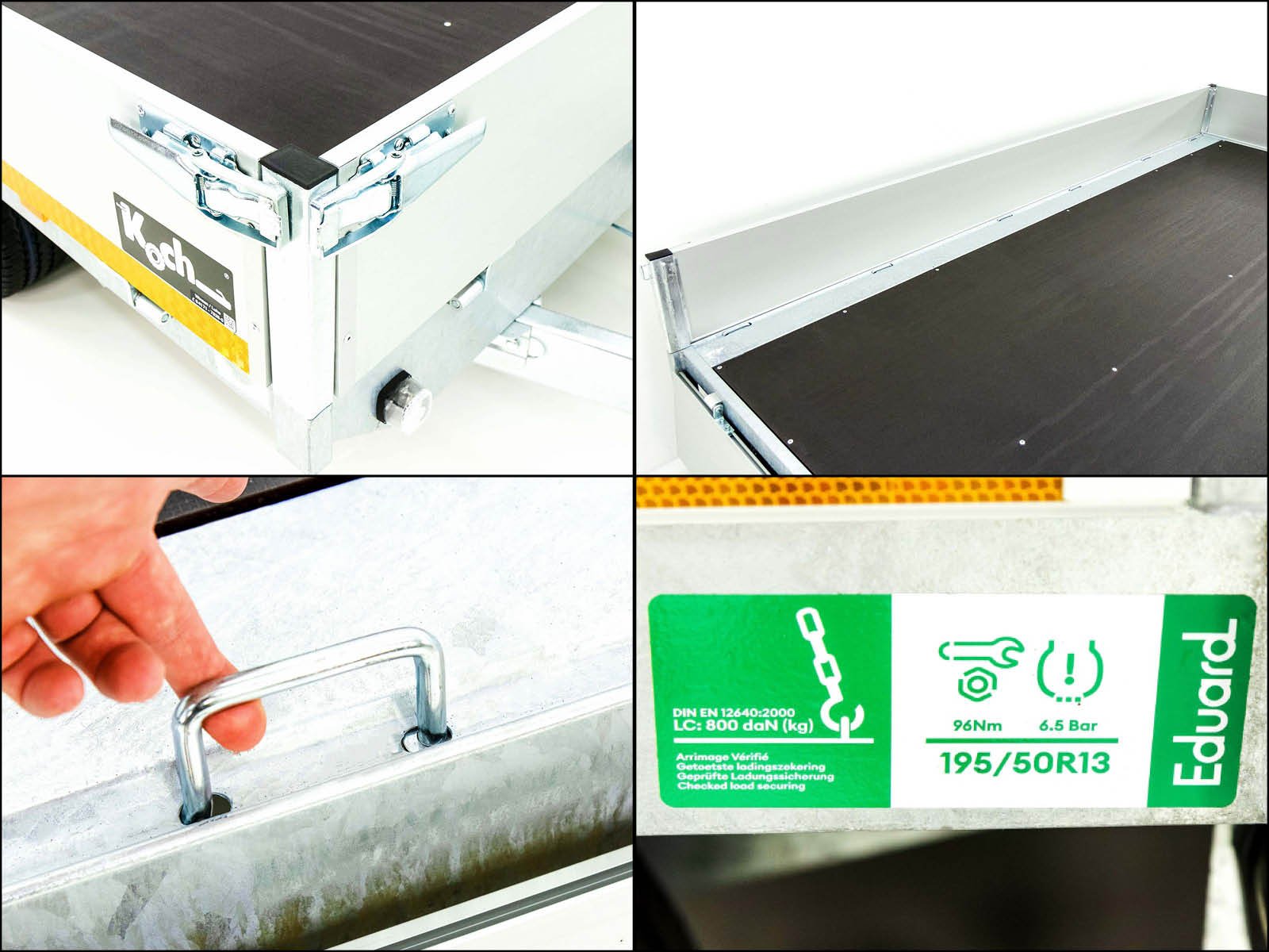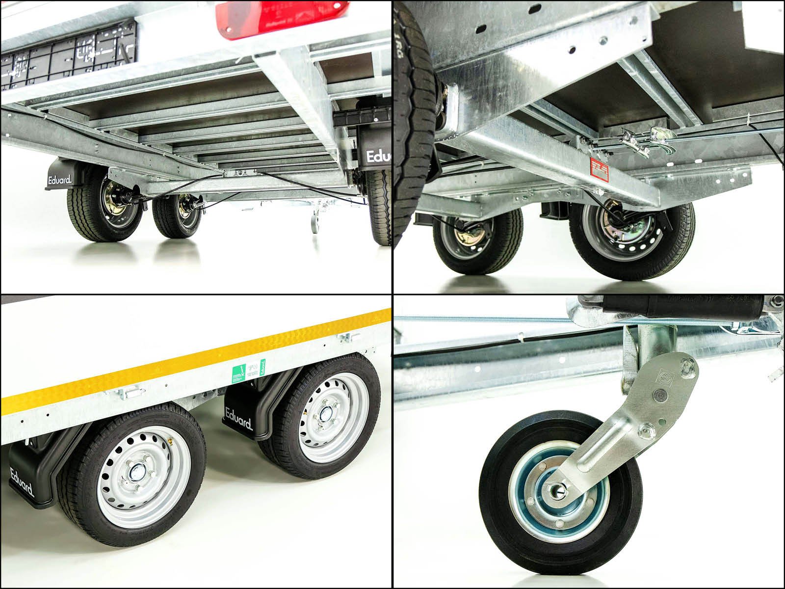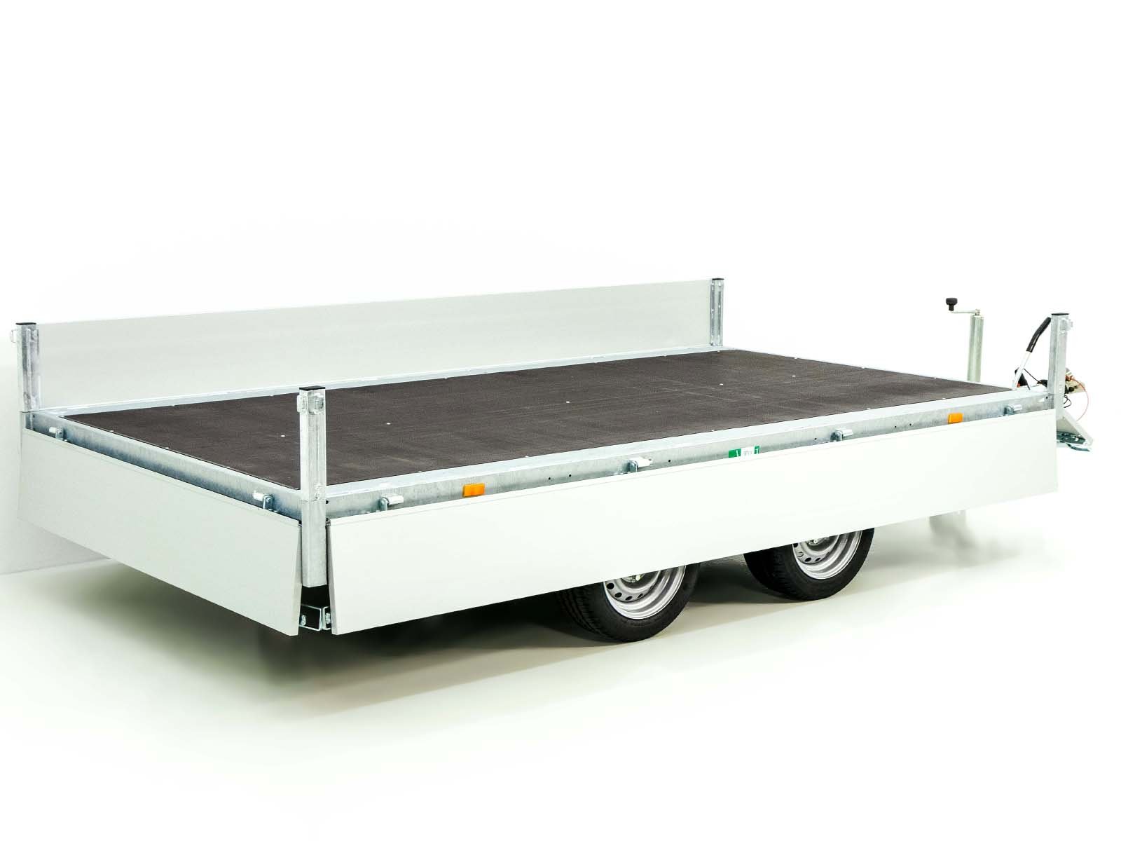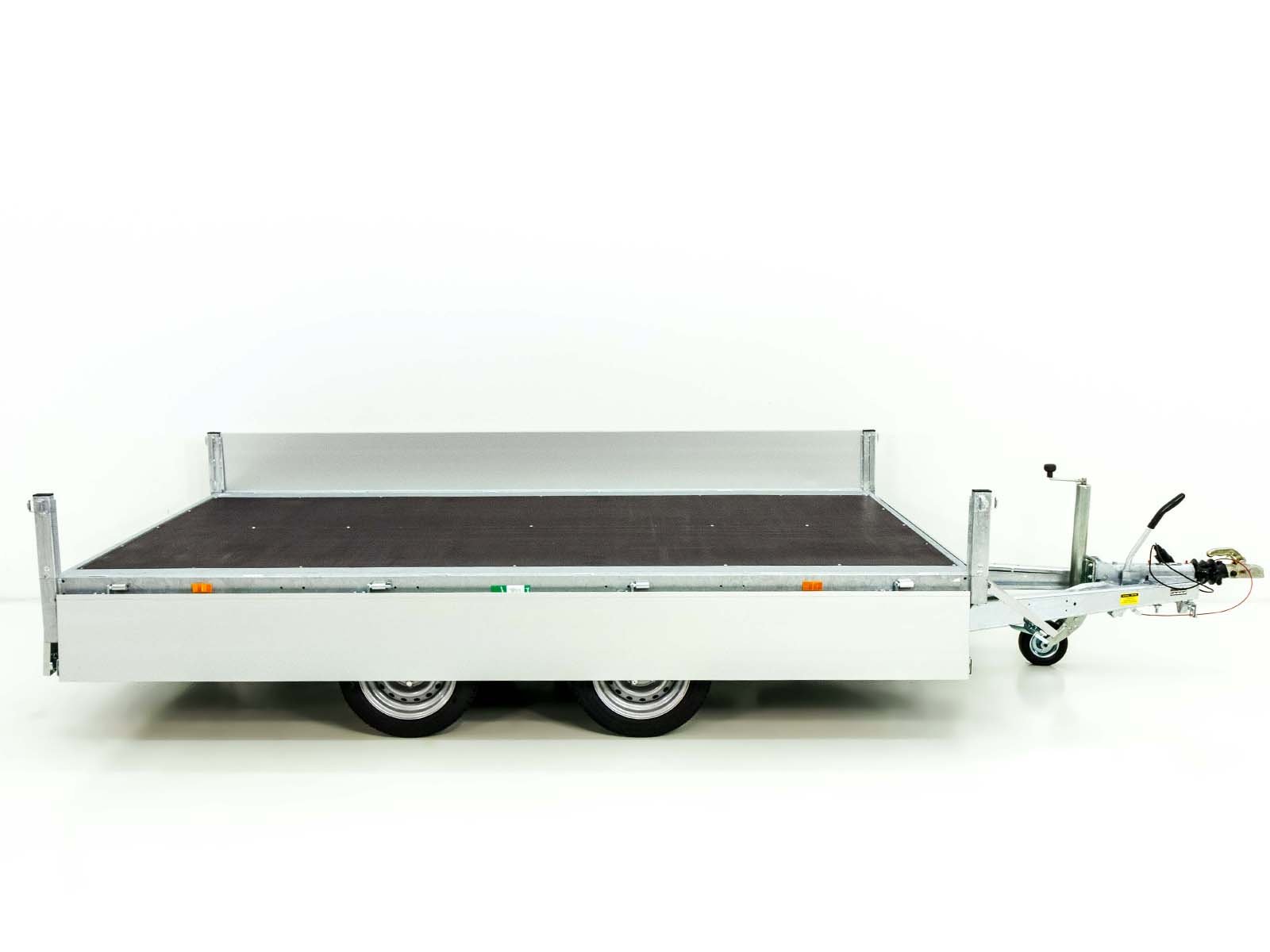 De Edward 3318 GD hooglader is een robuuste aanhangwagen met een royale laadruimte van 180 x 330 cm en een toegestaan totaalgewicht van 2,7 ton, ideaal voor zwaardere transporttaken. Dankzij de volbad verzinkte staalconstructie en de afneembare aluminium zijwanden (300 mm hoog) is de trailer zowel duurzaam als veelzijdig. Met 12 sjorogen (800 daN) kan de lading veilig worden vastgezet. Het automatische steunwiel en de automatische achteruitrijfunctie zorgen voor extra gebruiksgemak. Optioneel kan de aanhangwagen worden goedgekeurd voor 100 km/u. Daarmee is de Edward 3318 GD geschikt voor zowel professioneel als particulier gebruik.