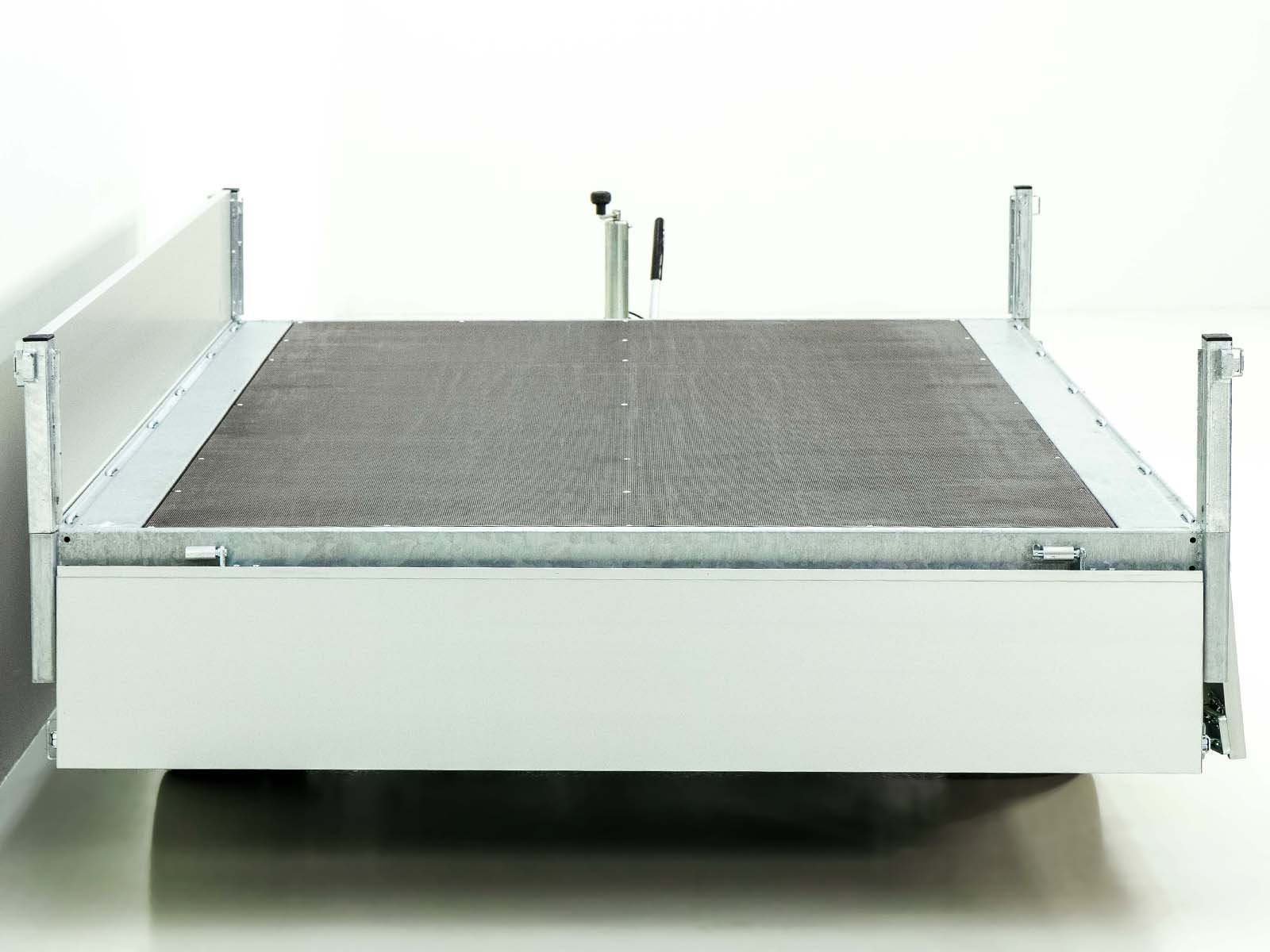 | Zijwanden | Aluminium, 300 mm hoog, neerklapbaar en afneembaar |