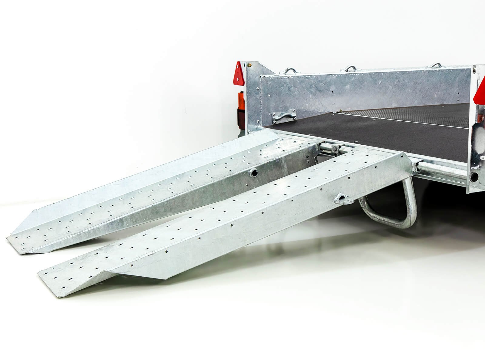 Der Ifor Williams GH1054 163x305cm 3,5t Baumaschinenanhänger ist ein leistungsstarker Anhänger mit einer Nutzlast von 2.852 kg. Dank seiner robusten Materialien und hochwertigen Verarbeitung eignet er sich optimal für den zuverlässigen Transport von Maschinen und Geräten. Die stabilen Stahlrampen erleichtern das komfortable Beladen.