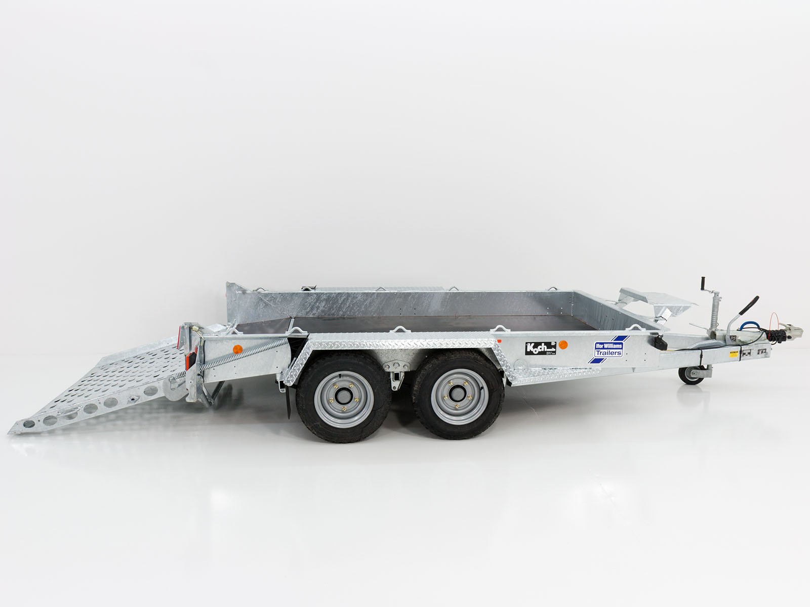 Der Ifor Williams GH1054 163×305 3,5t Baumaschinenanhänger mit robuster Auffahrrampe aus Stahl ist ideal für den Transport von Baumaschinen und schweren Lasten. Mit einer Nutzlast von 2.852 kg und einem zulässigen Gesamtgewicht von 3.500 kg bietet er optimale Transportmöglichkeiten.