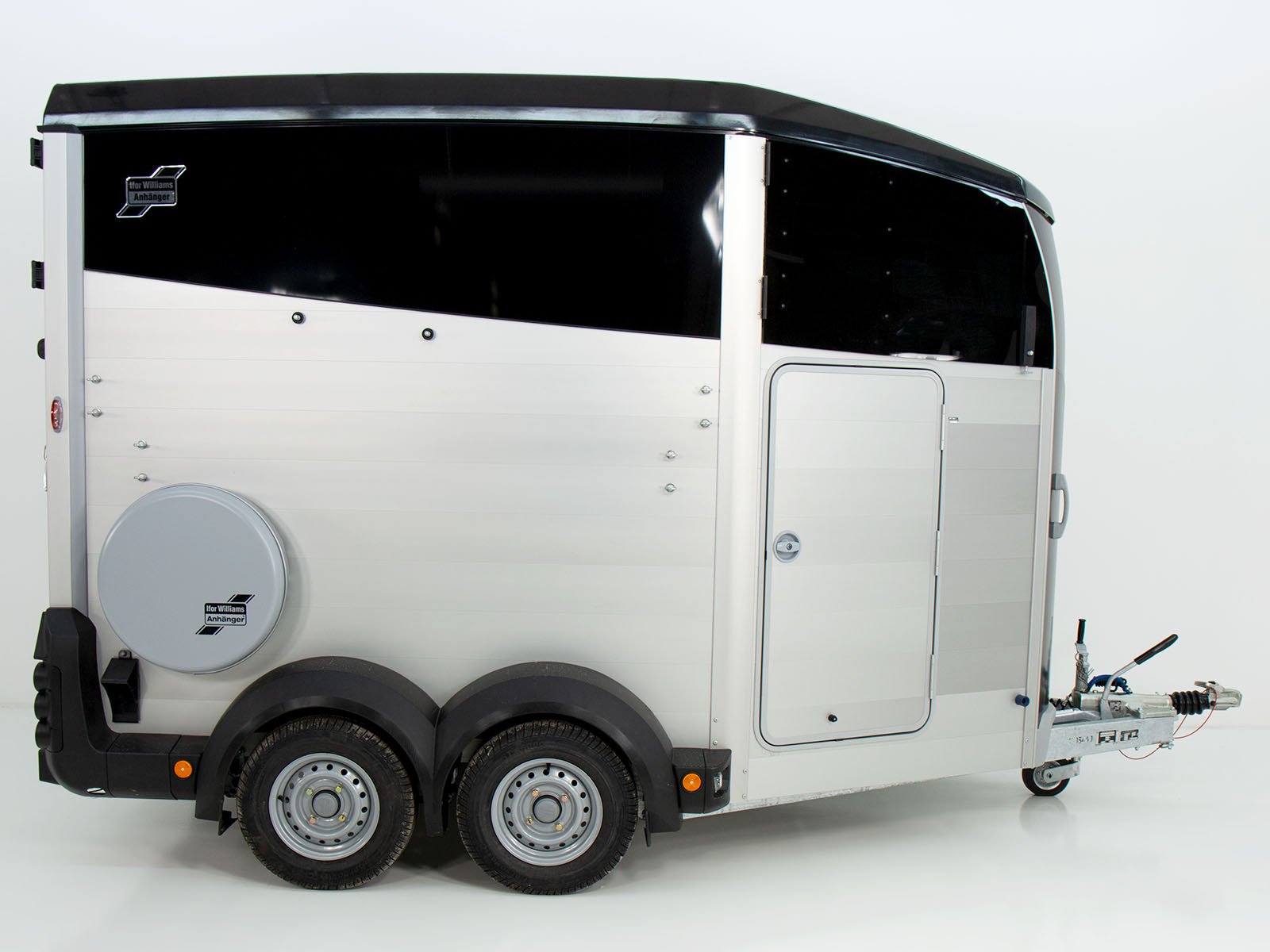 Der Pferdeanhänger HBX 506 in Schwarz mit Sattelkammer überzeugt durch hochwertige Verarbeitung und durchdachte Details für Reitsportler und Pferdeliebhaber.