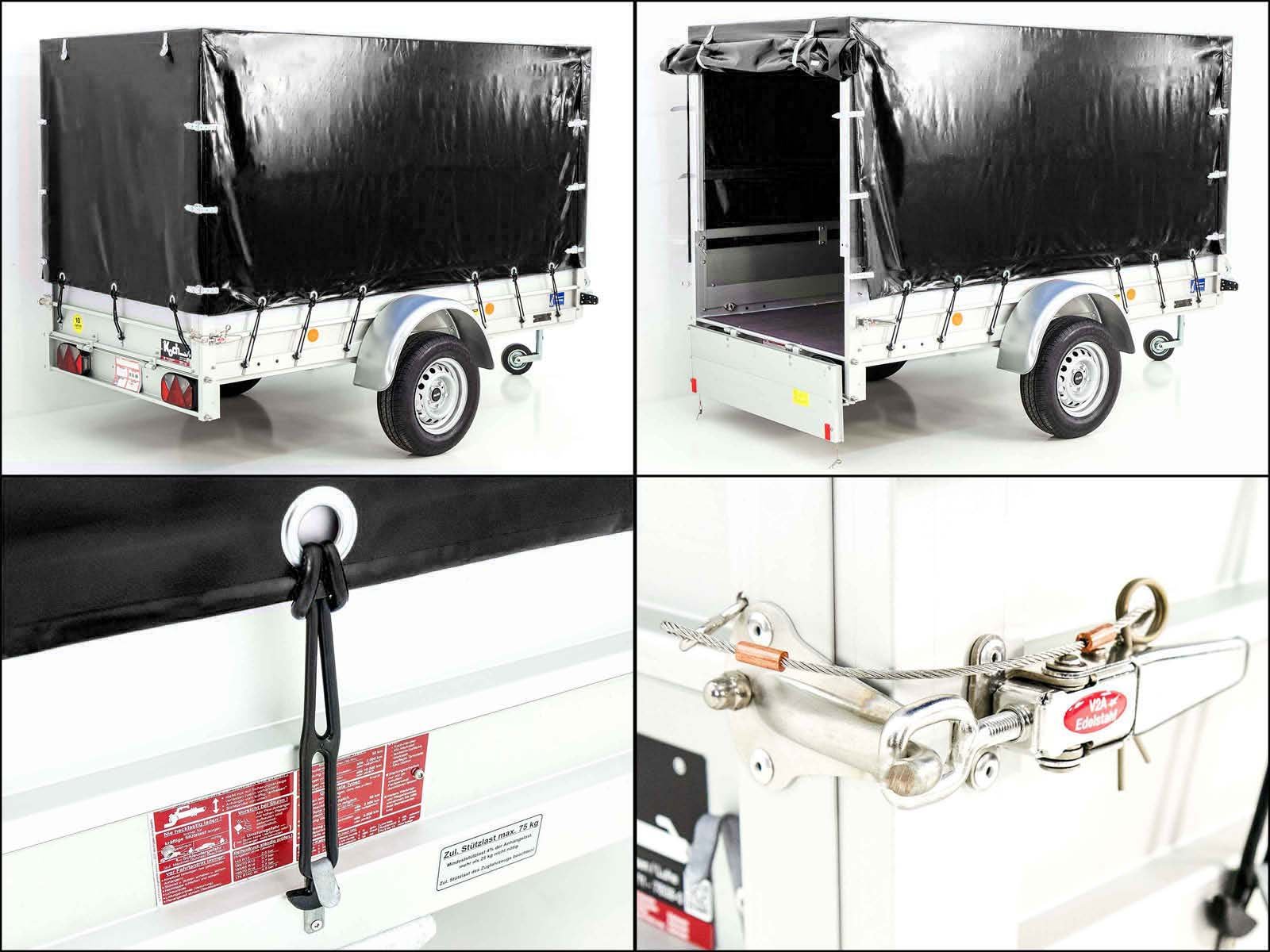 Keukenaanhangwagen met zeil 125x250cm 750kg | Type U4 | Professioneel hoog zeil 140 cm | Zwart