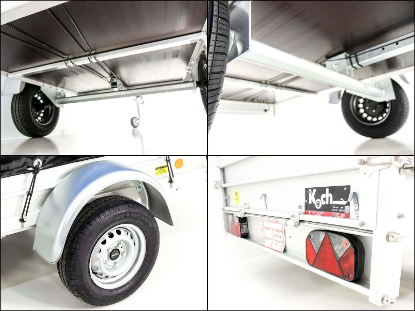 Zoals bij de andere modellen beschikt deze aanhanger over een thermisch verzinkte as en een onderhoudsvrij assysteem met rubbervering. De 12V elektrische installatie zorgt voor veilige verlichting onderweg.