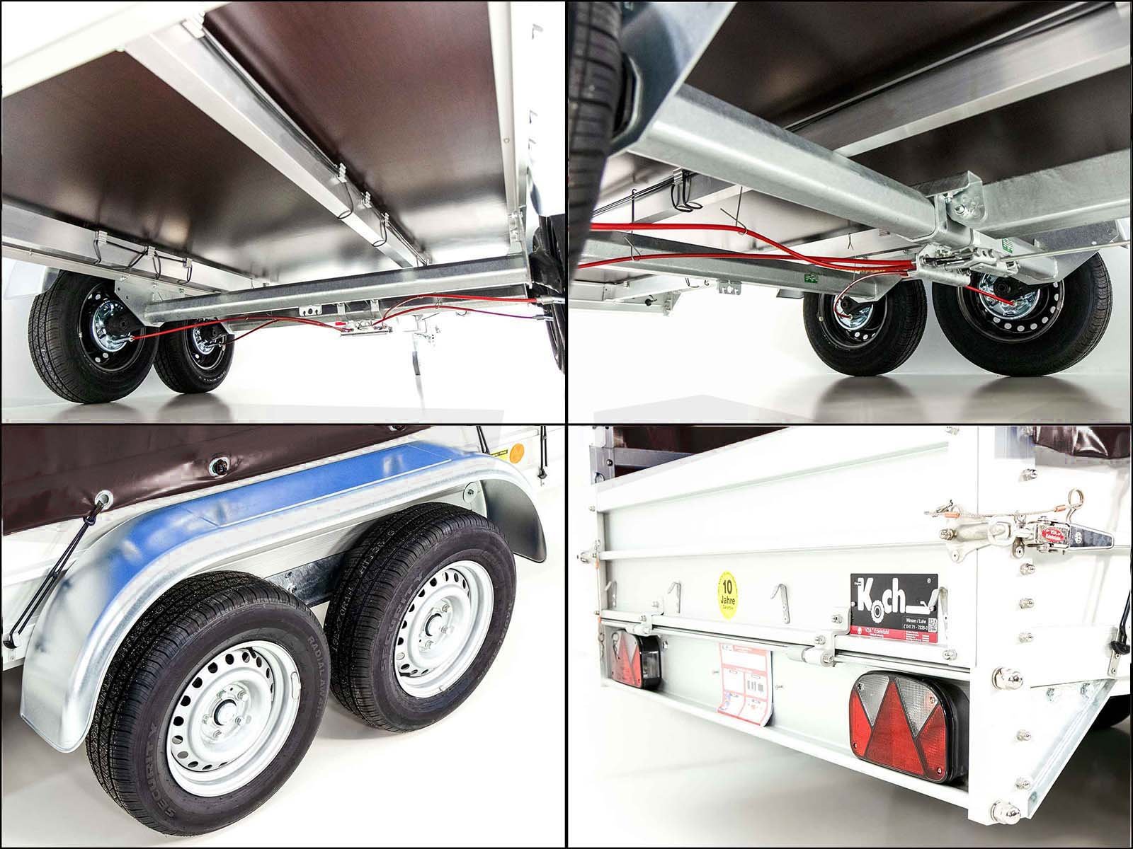 De Koch aanhanger type 8.26 met een huifhoogte van 180 cm in de kleur zwart is een compacte maar krachtige oplossing voor transporten tot 2.170 kg met een totaalgewicht van 2.600 kg. De trailer wordt gekenmerkt door: