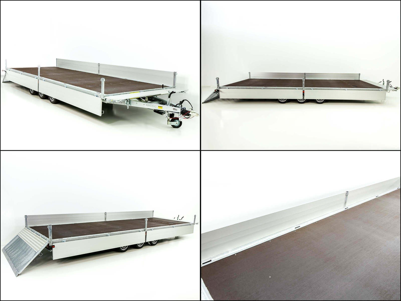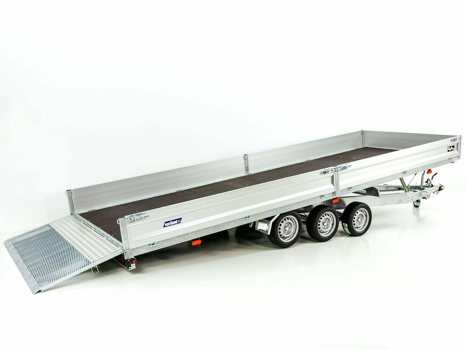 De Variant 3563 UX hooglaad aanhangwagen is een krachtige trailer met een royale laadruimte van 6,2 meter lang en een maximaal laadvermogen van 2.336 kg. Met zijn kantelbare platform, bediend door een enkelwerkende handpomp, is de aanhangwagen ideaal voor het vervoeren van zware en grote ladingen. De oprijklep met een lage openingshoek van 10 graden, evenals de robuuste vastzetringen en bindogen onder het laadoppervlak, bieden extra flexibiliteit bij het laden en vastzetten van de lading. De thermisch verzinkte constructie en hoogwaardige materialen, zoals aluminium zijwanden en een multiplex houten vloer, maken de aanhangwagen bijzonder duurzaam en robuust.