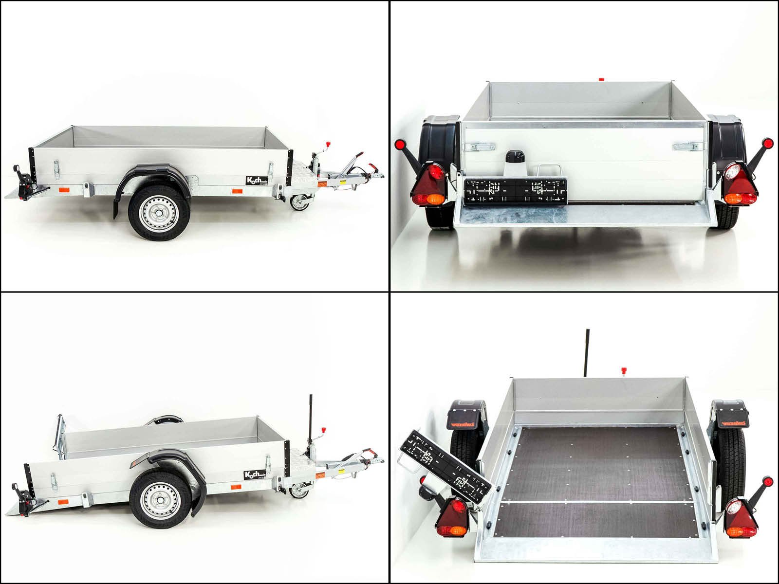 Productinformatie over de opvouwbare aanhanger Vezeko 127×246 cm 1,0 t | zijwandbevestiging: